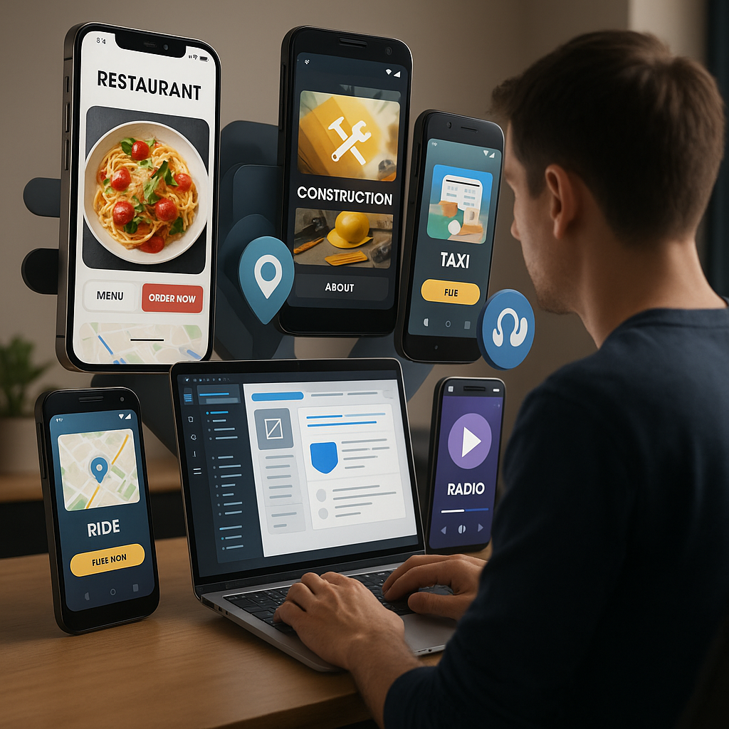 Flyers, webs, logos, videos, jingles, audio profesional, marketing y PWAs para Android y Apple.